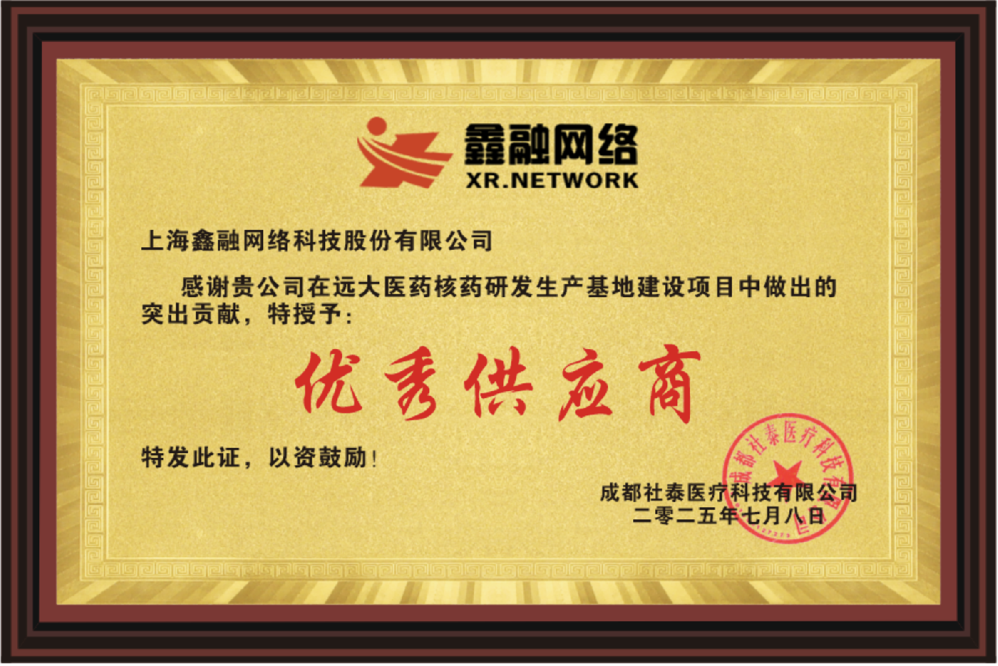鑫融網絡近日再添捷報—— 憑借在遠大核藥研發生產基地智能化項目實施中的卓越表現,不僅項目順利通過驗收,更獲頒 “優秀供應商” 表彰!作為港股上市企業(股票代碼:00512.HK),遠大醫藥集團是一家聚焦制藥科技與前沿醫療領域的國際化創新藥企。此次備受關注的遠大核藥研發生產基地,是集團布局核藥領域的核心樞紐