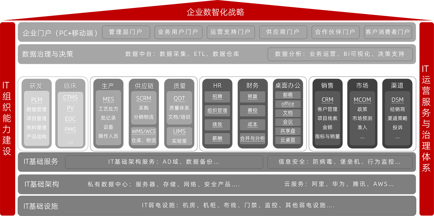 過去幾十年,由于醫(yī)藥行業(yè)高毛利,生存環(huán)境樂觀,傳統(tǒng)的研發(fā)、生產(chǎn)、商業(yè)流通及營銷粗放式建設(shè)及管理,仍然可以維持企業(yè)生存和高利潤。近年來,隨著國內(nèi)對科技創(chuàng)新日益重視,集采等配套醫(yī)改政策不斷推進,疫情等突發(fā)公共衛(wèi)生事件,醫(yī)藥企業(yè)生存環(huán)境已然改變。醫(yī)藥企業(yè)圍繞降本增效不斷尋找新的出路,數(shù)字化轉(zhuǎn)型成為藥企的重要選擇。鑫融網(wǎng)絡(luò)通過融合AI、IOT、大數(shù)據(jù)等創(chuàng)新技術(shù),打通企業(yè)ERP、MES等業(yè)務(wù)數(shù)據(jù)系統(tǒng),圍繞人、機、料、法、環(huán),通過視覺、AGV、RFID等各類先進傳感技術(shù),將感知數(shù)據(jù)匯聚到園區(qū)數(shù)智平臺,持續(xù)賦能各需求業(yè)務(wù)應(yīng)用層,助力企業(yè)進行安全保障、生產(chǎn)高效,經(jīng)營領(lǐng)先轉(zhuǎn)型升級。